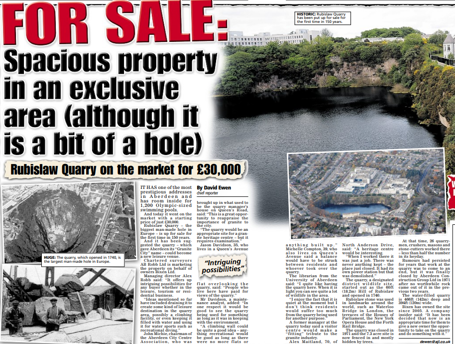 The first: an abandoned quarry in the west end of Aberdeen, not far from where we lived.