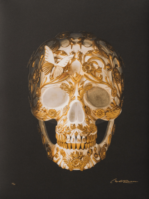 “Gilded Skull I sees 3D sculptor Gary James McQueen translate one of his most recognisable images, alongside an extraordinary new design, into a silkscreen collection for the first time”.