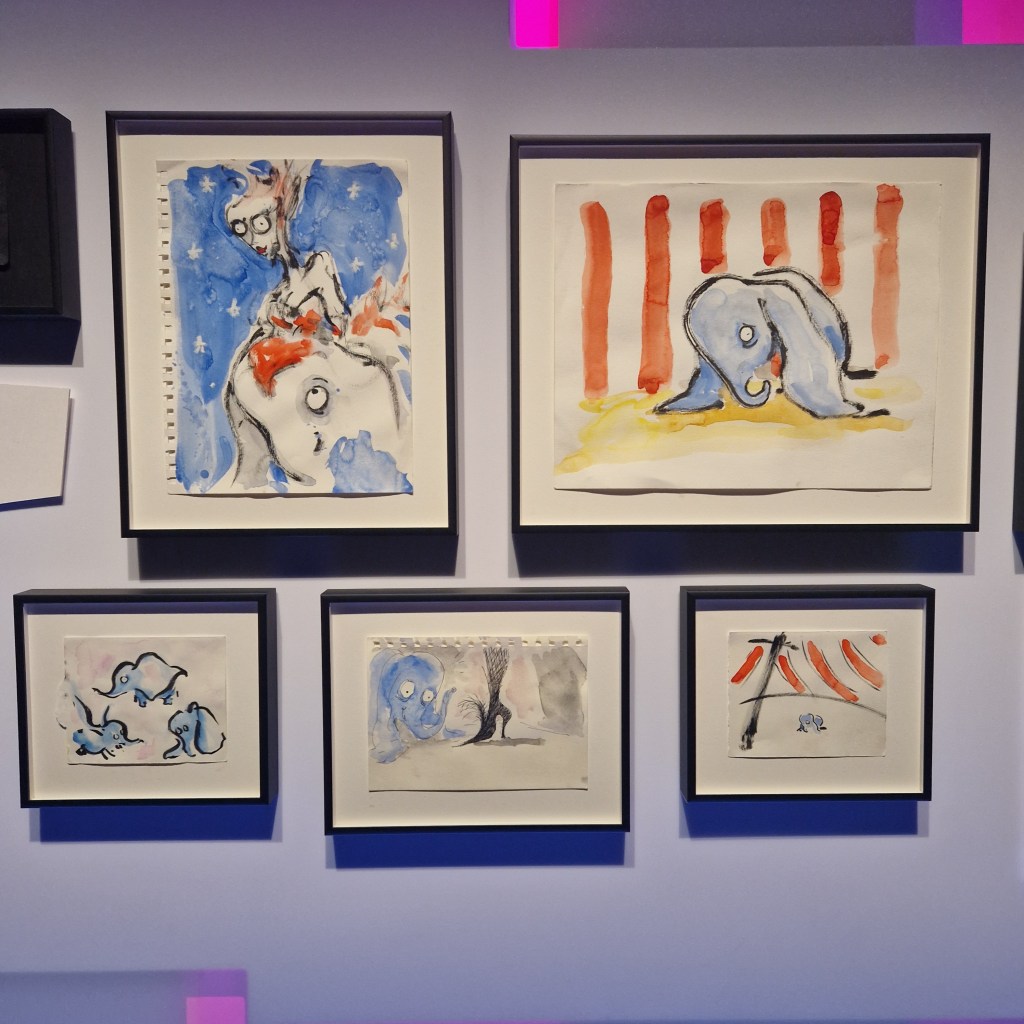 Walking through the exhibition, I wasn’t just revisiting familiar characters. I was seeing the scaffolding behind them. The sketches, the sculptures, the stitched silhouettes. Each piece a small part of a larger story. A language of emotional shorthand built over decades.