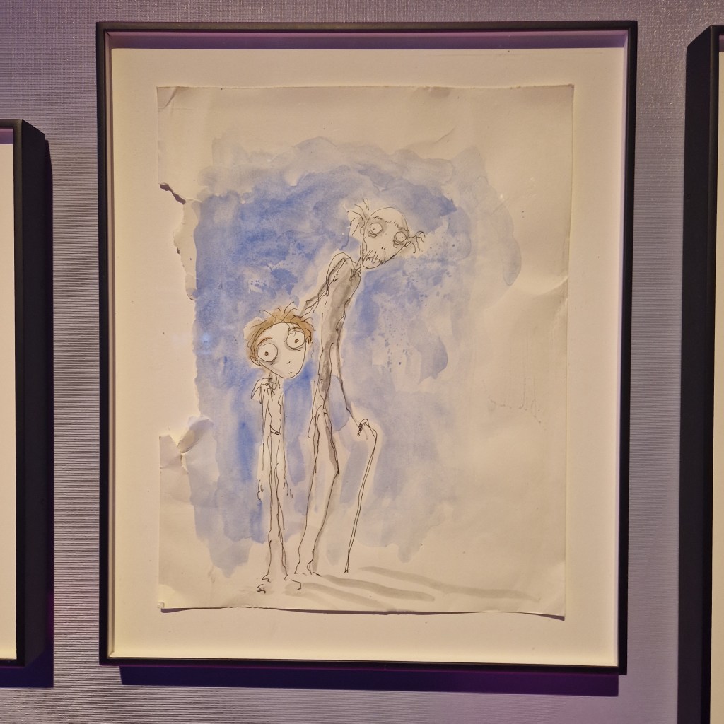 They stood in glass cases, each one pulled from Burton’s drawings and given form. You could see the translation, lines becoming limbs, expressions solidifying into something you could walk around.